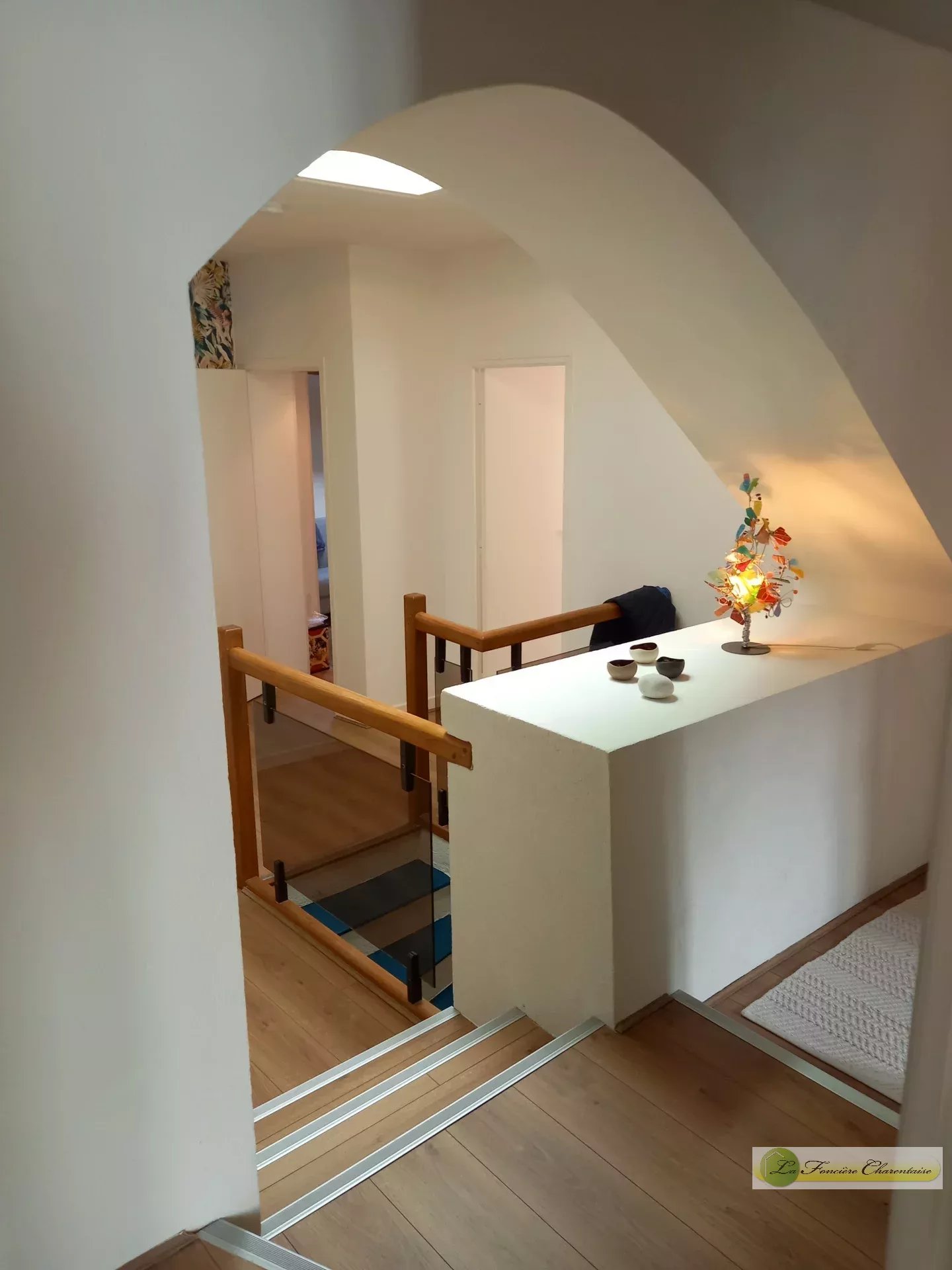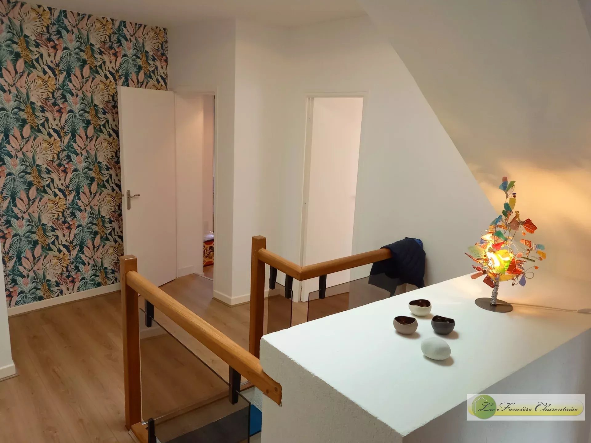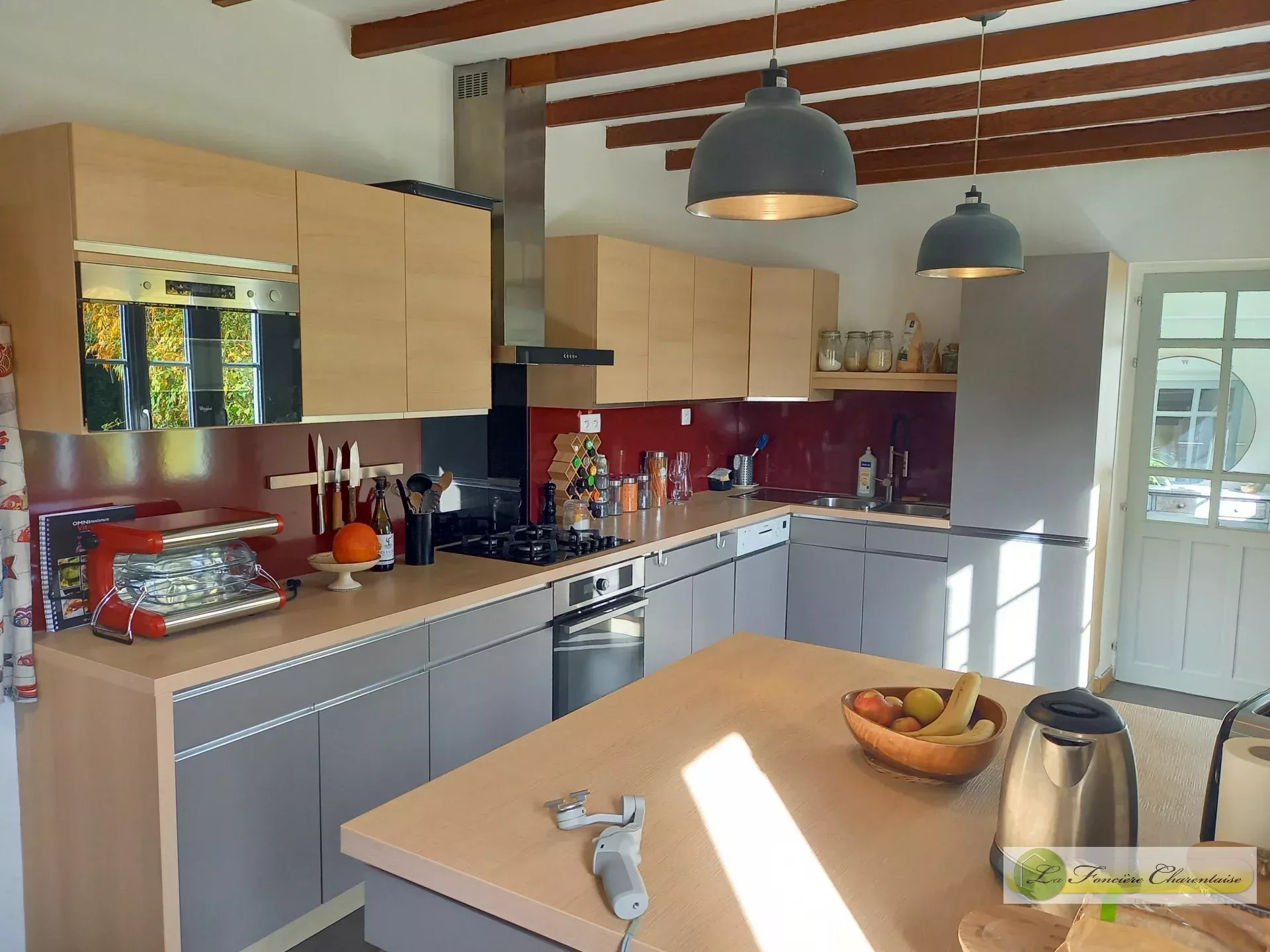 Pleine de caractère cette maison charentaise vous charmera de part son authenticité et confort moderne en étant près de toutes commodités. Elle se compose d'une entrée avec rangements desservant une belle cuisine aménagée, fonctionnelle et lumineuse, un salon et une salle à manger avec cheminée centrale reliant harmonieusement les deux pièces, sol en travertin naturel et beau parquet.